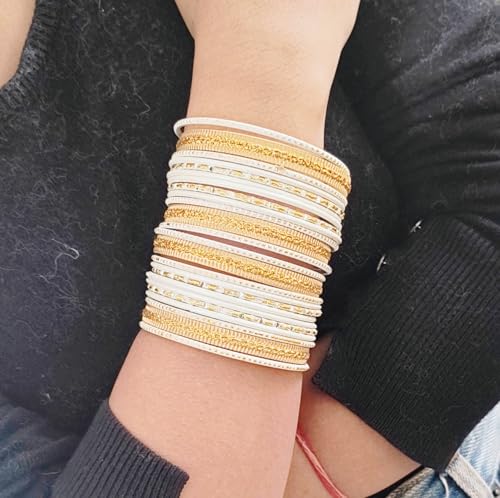 Specification: Touchstone Indian Metal Bangles for Women Gold Alloy Bracelets desi 2 Dozen Bangle Collection Bollywood Women’s Jewelry Set Multi Stacking Wide Chunky Textured Golden Set of 24 in Gold or White Tone